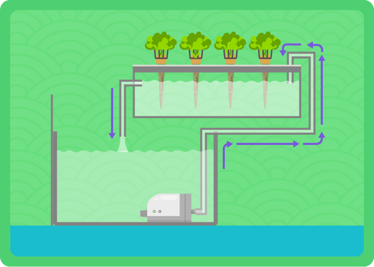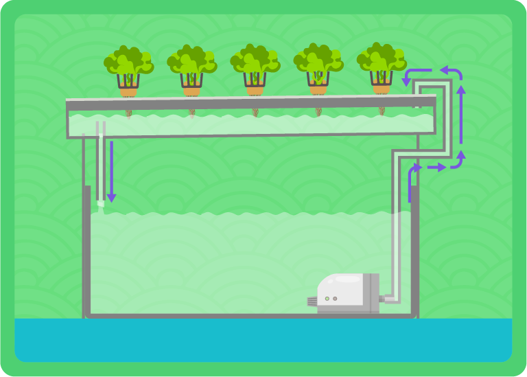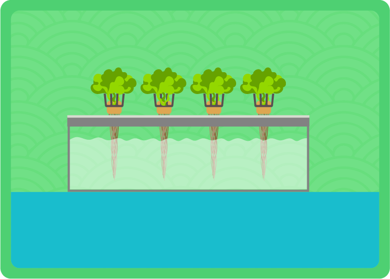 Larutan baja disalurkan dalam palung yang mengandungi akar tanaman yang ditanam