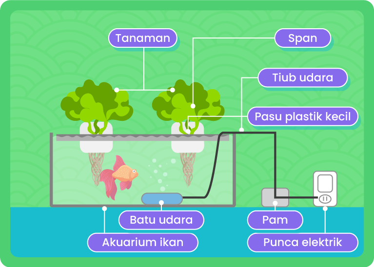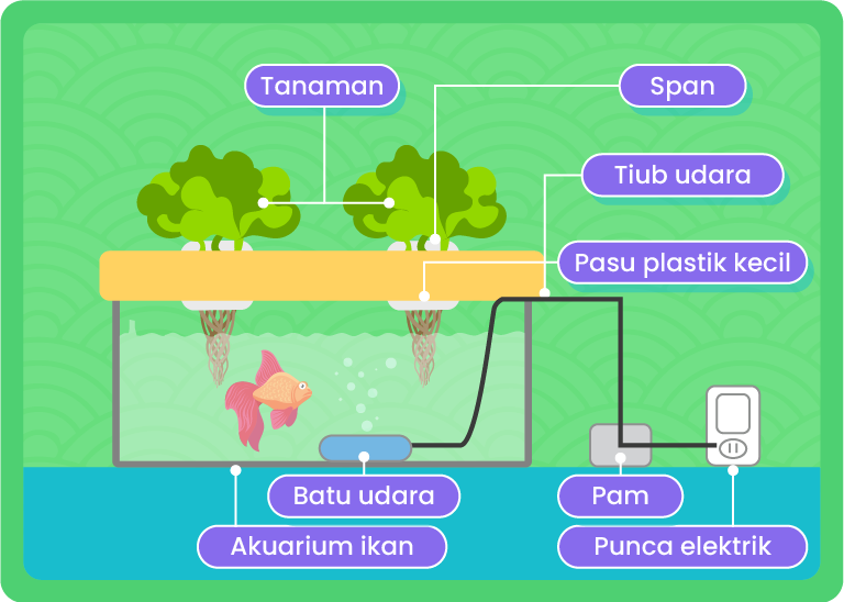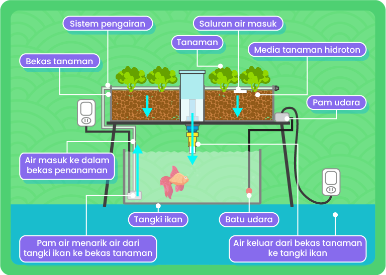 Mempunyai dua bekas tangki yang berasingan iaitu tangki ikan dan tangki tanaman