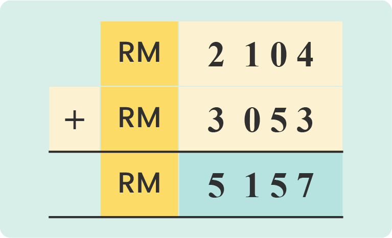 RM 2 104 + RM 3 053 = RM5 157