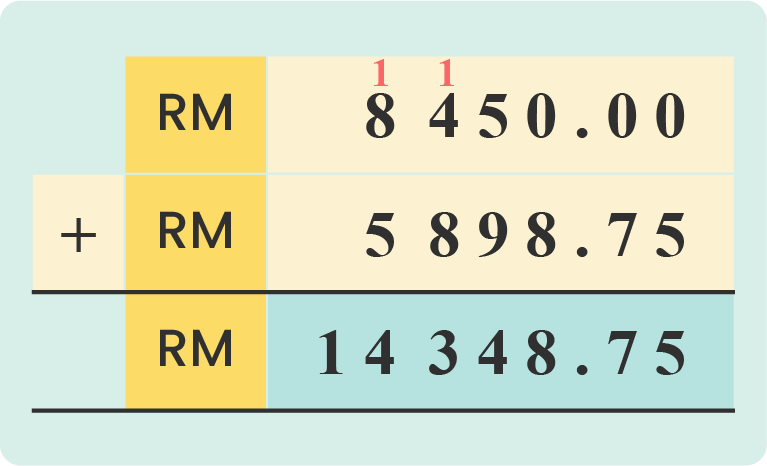 RM 8 450 + RM 5 898.75 = RM14 348.75