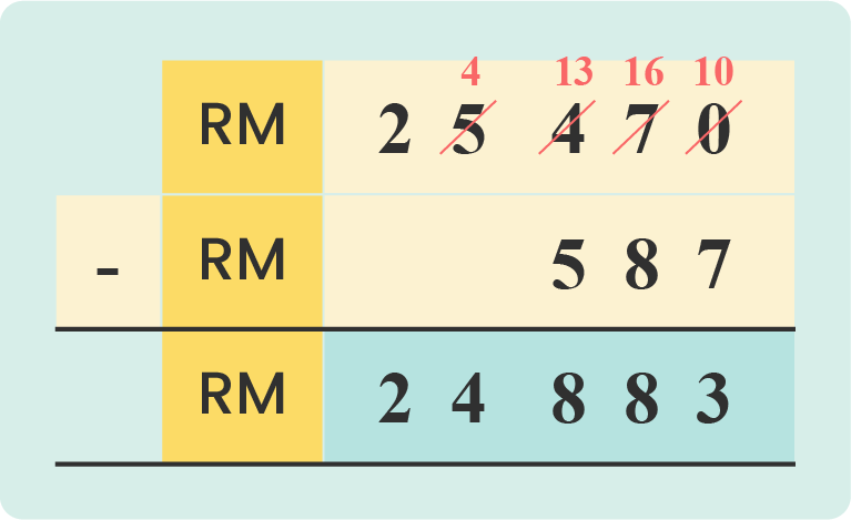 RM 25 470 - RM 587 = RM24 883