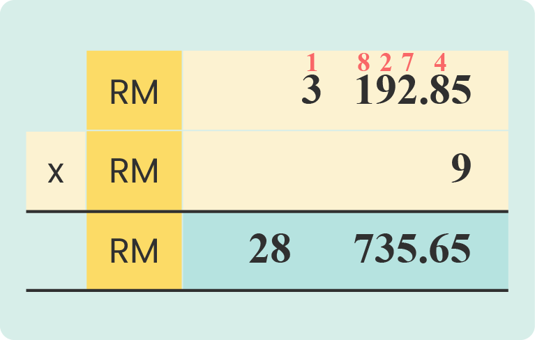 9 X RM 3 192.85 = RM28 735.65