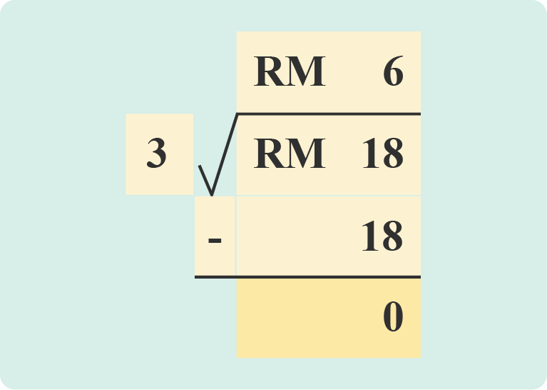 RM 18 ÷ 3 = 6