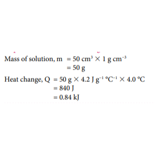 The heat of neutralisation is the heat change when one mole of water is formed from the reaction between an acid and an alkali
