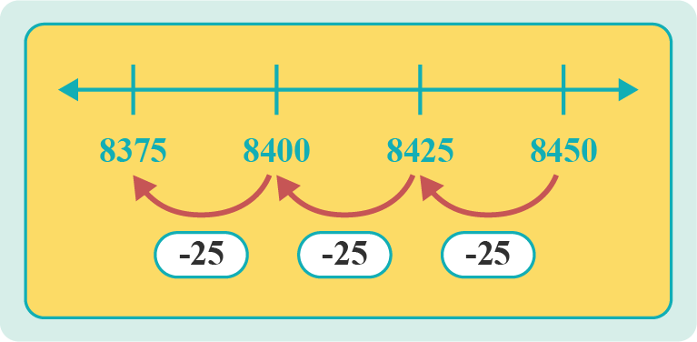 Number sequence count back in twenty-five
